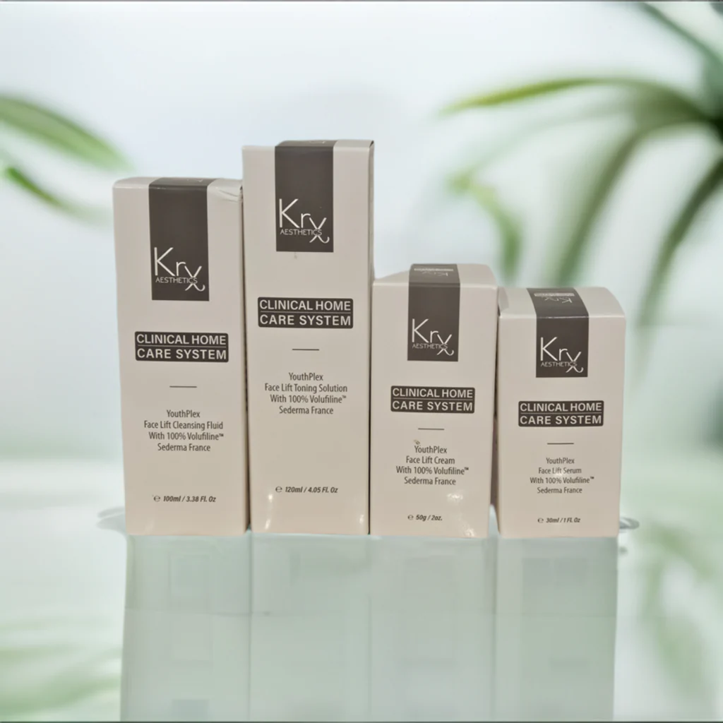 The KrX Youthplex Bundle is an age-defying home skincare system powered by Volufiline™ peptides extracted from Anemarrhena asphodeloides, designed to restore volume, firmness, and radiance. Exclusively formulated in Korea and curated by licensed estheticians, the set includes:
